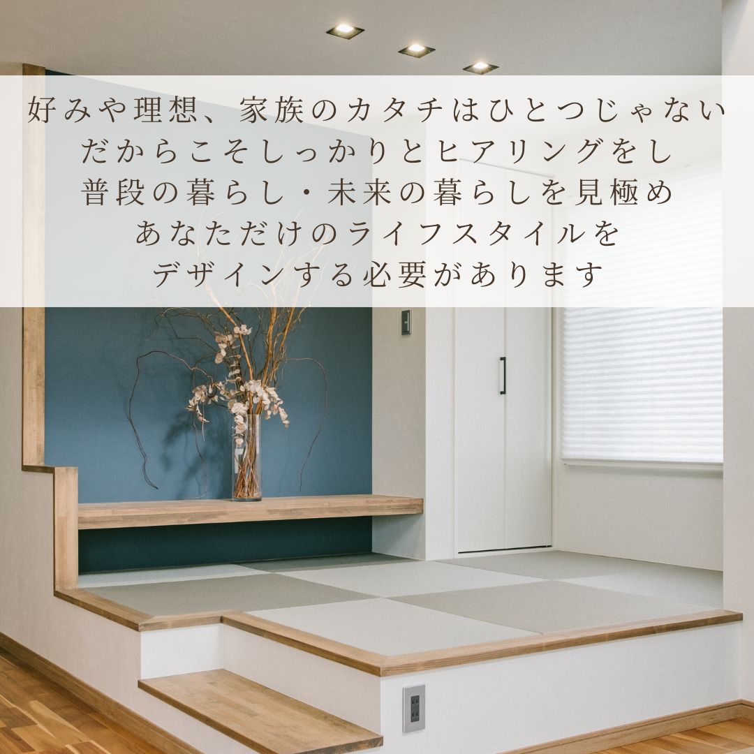 暮らしや働き方などライフスタイルが多様化する現在だからこそ お一人おひとりの希望、お好みに寄り添った家づくりを心がけています