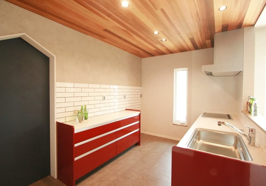 下にレールがないのでキッチンとフラットです。