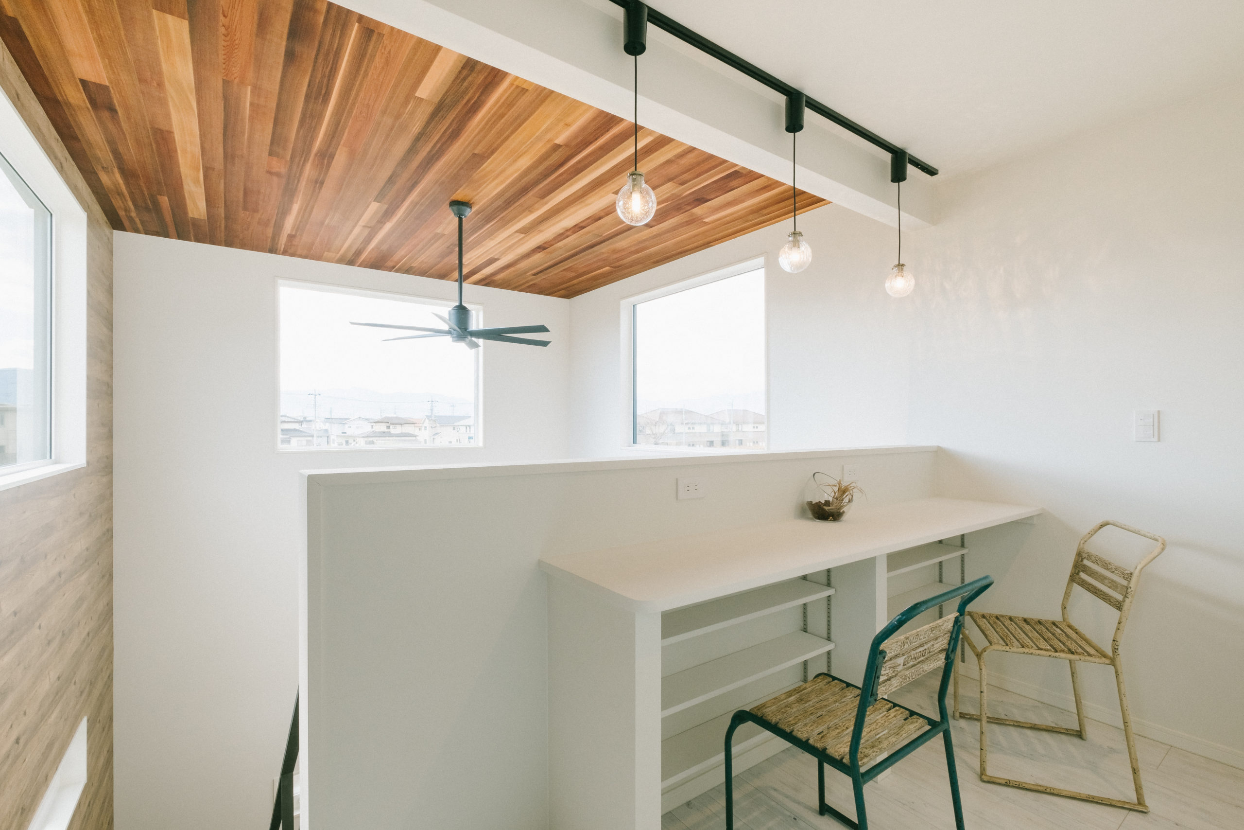 開放感たっぷりの吹き抜けを上るとそこには憩いのカフェ空間 家事の合間に読書やコーヒーブレイクを楽しむことも♪ ... 暮らしと自分のこだわりを貫けるタカラホームで “最幸”の暮...